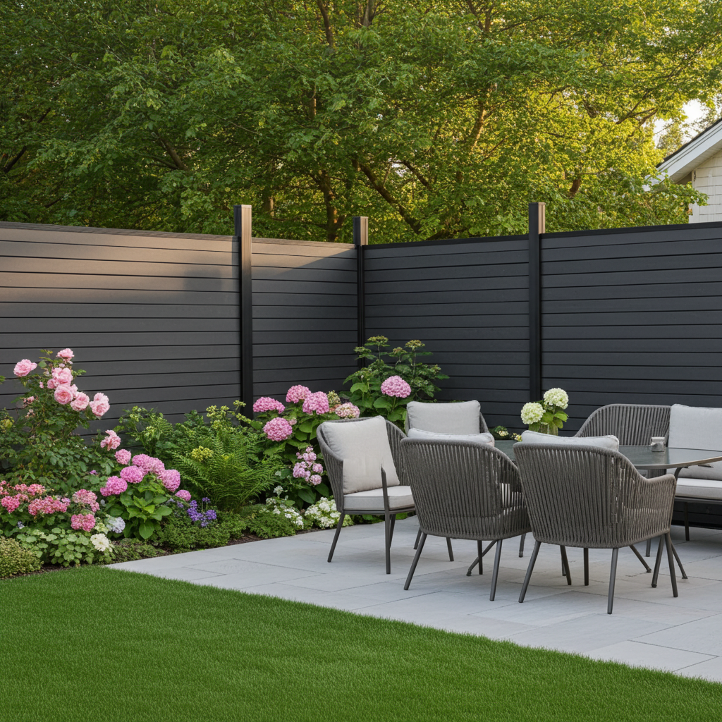 Durable, low-maintenance composite privacy fence, perfect for outdoor spaces.