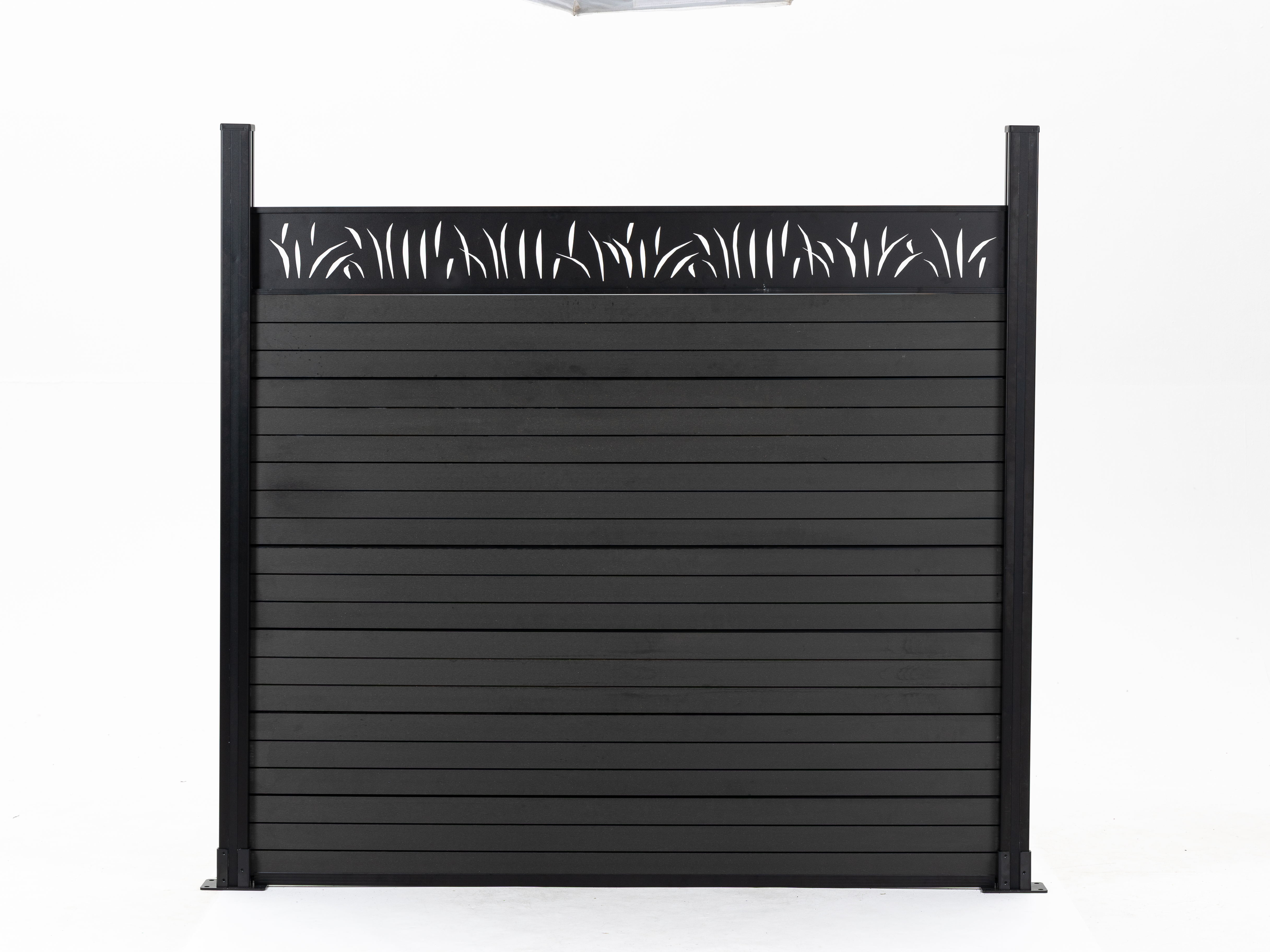WPC fence, wood plastic composite fence, privacy panel, decorative fencing, backyard fence, garden screen, eco-friendly fence, black WPC fence, AM60, Treslam fence