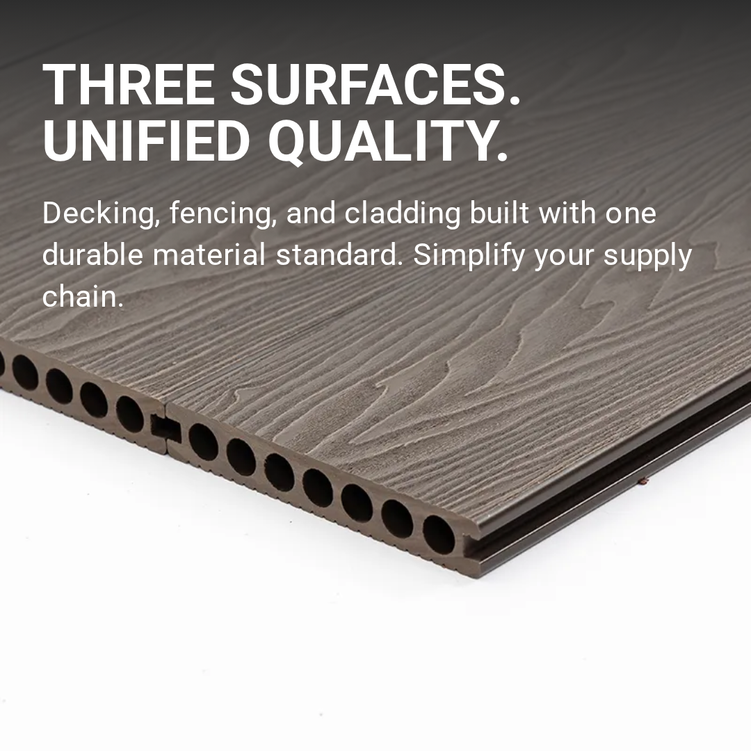 Treslam AM79-1 WPC Decking is a lightweight, cost-effective, and visually clean solution for outdoor flooring. Designed with a seven-hole circular hollow core and a single-sided groove surface, this model delivers structural efficiency while maintaining a streamlined aesthetic.