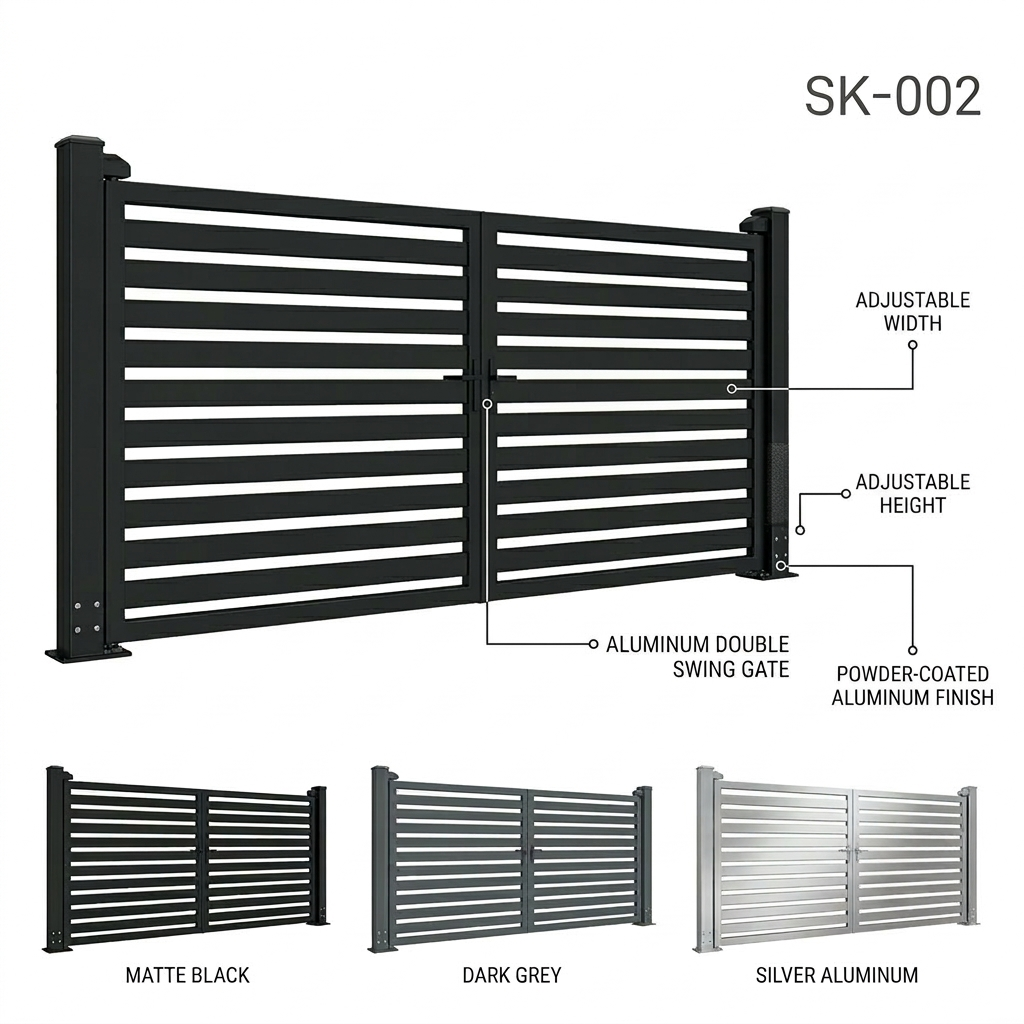 Manufactured from corrosion-resistant aluminum with a durable powder-coated finish, the SK-002 gate is built to withstand outdoor environments while remaining lightweight and easy to operate.