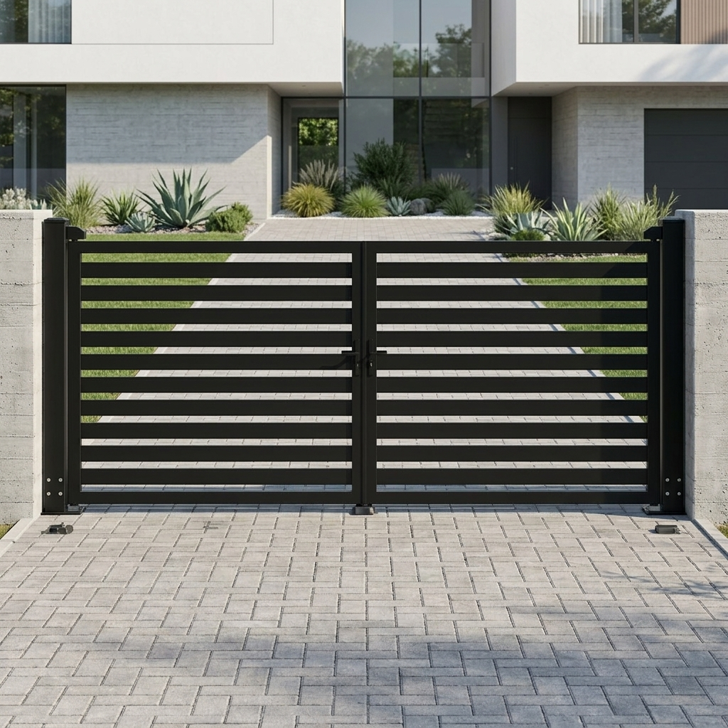 This gate design is particularly suitable for modern residential homes, villa entrances, and commercial developments where both aesthetics and functionality are important.